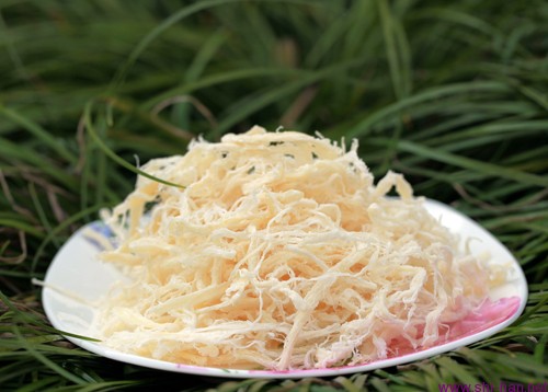 采用优质鱿鱼身体的肥厚肉为原料,经过秘制配方调料盐渍,48小时后再去烘烤而成,做到色、香、味品质一流!色泽呈白色,松硬度适中、丝较细,口感棒、口味纯、有咬头。